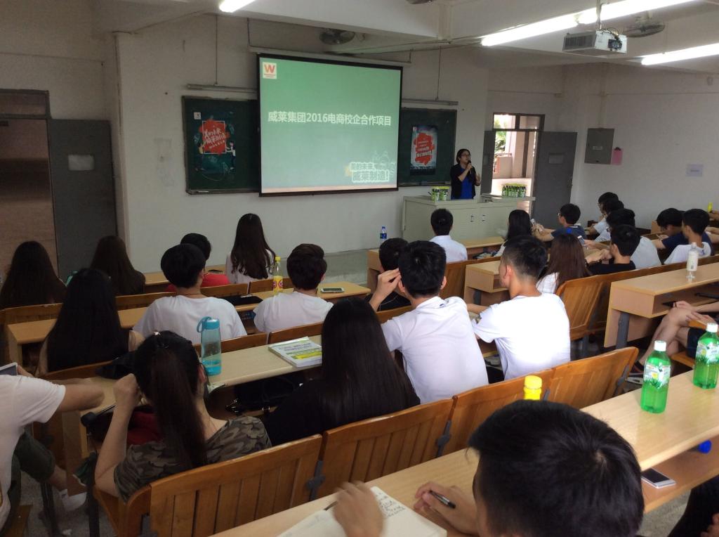 6月1日下午,威莱集团有限公司邵轃伟等一行五人在信工财经楼220开展项目宣讲会,电商教研室主任张海、副主任何波、校企合作专员王光焰教授全程跟踪,辅导员梁土权老师组织14级电子商务专业全体学生参加宣讲会。