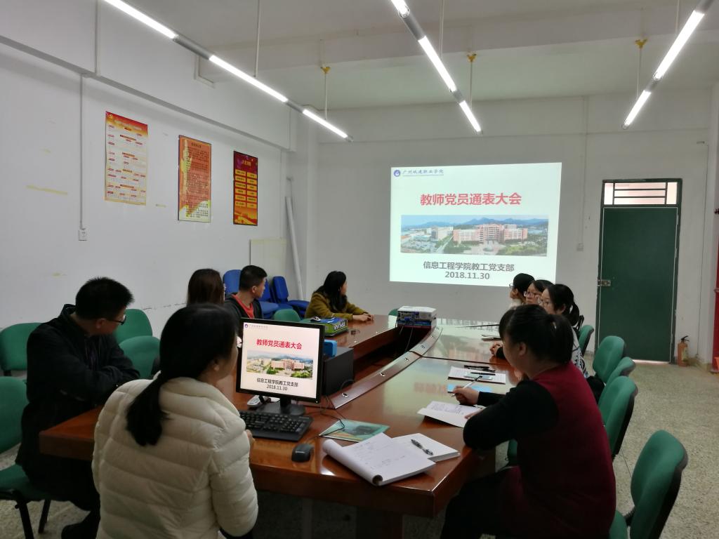 11月30日,信息工程学院教工党支部在信工财经楼328会议室举行教师党员通表大会。会议内容为袁绍静同志预备党员发展表决,会议由党支部书记郑永芹同志主持,全体教师党员出席了此次会议。