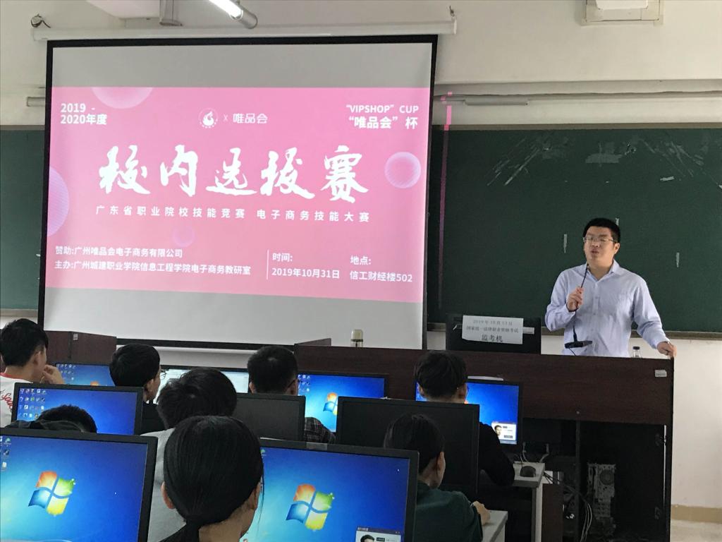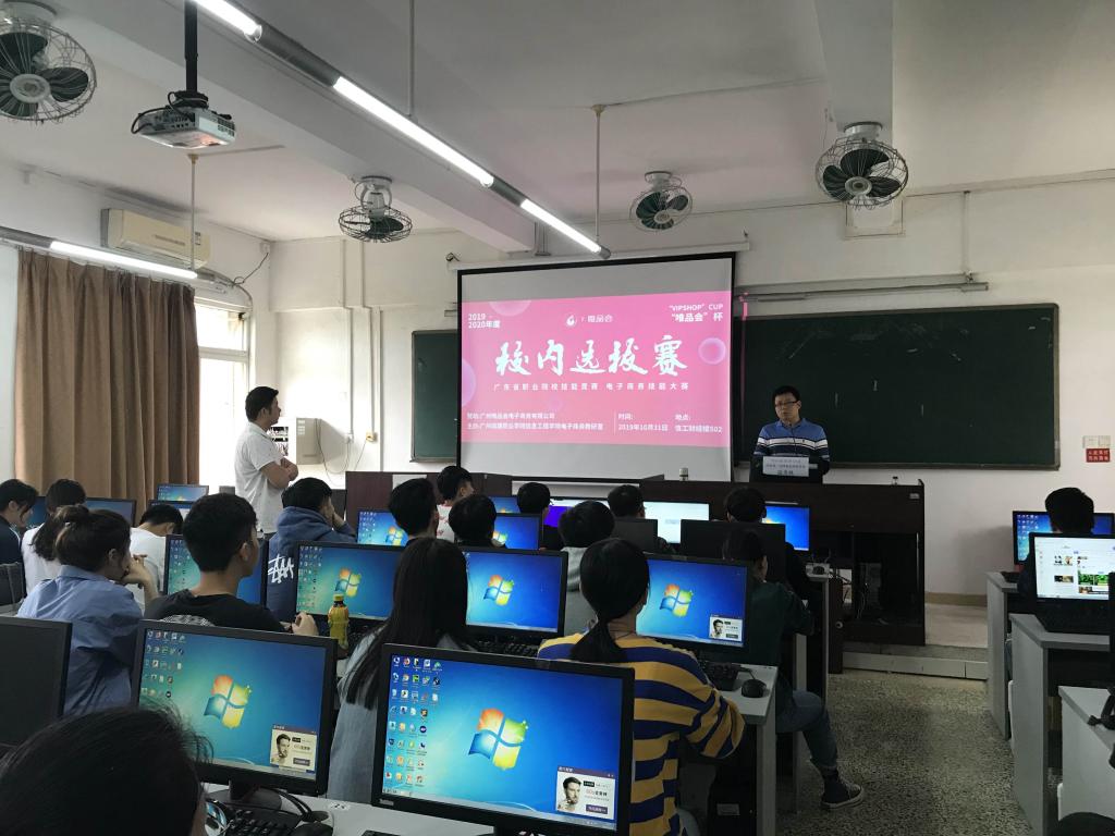 2019年10月31日下午,由信息工程学院电子商务教研室承办的2019-2020年度广东省职业院校技能大赛电子商务赛项“唯品会杯”校内选拔赛在信工财经楼503成功举行,本次选拔赛共有15支队伍合计60名学生报名参赛。