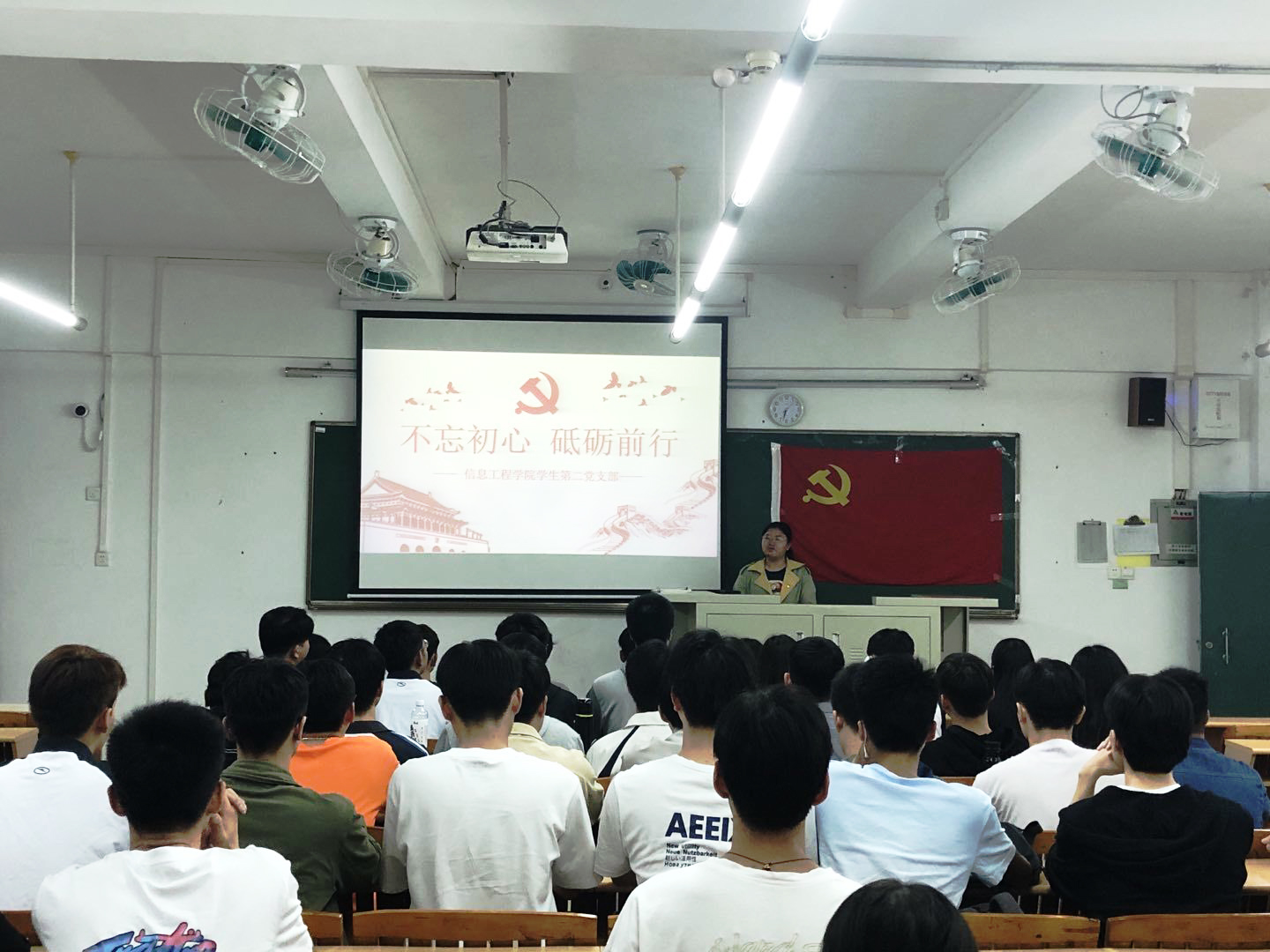 11月25日,信息工程学院学生第二党支部在2324开展以“不忘初心,砥砺前行”为主题的党日活动。活动由梁均玲主持,支部党员、重点发展对象、入党积极分子参加。
