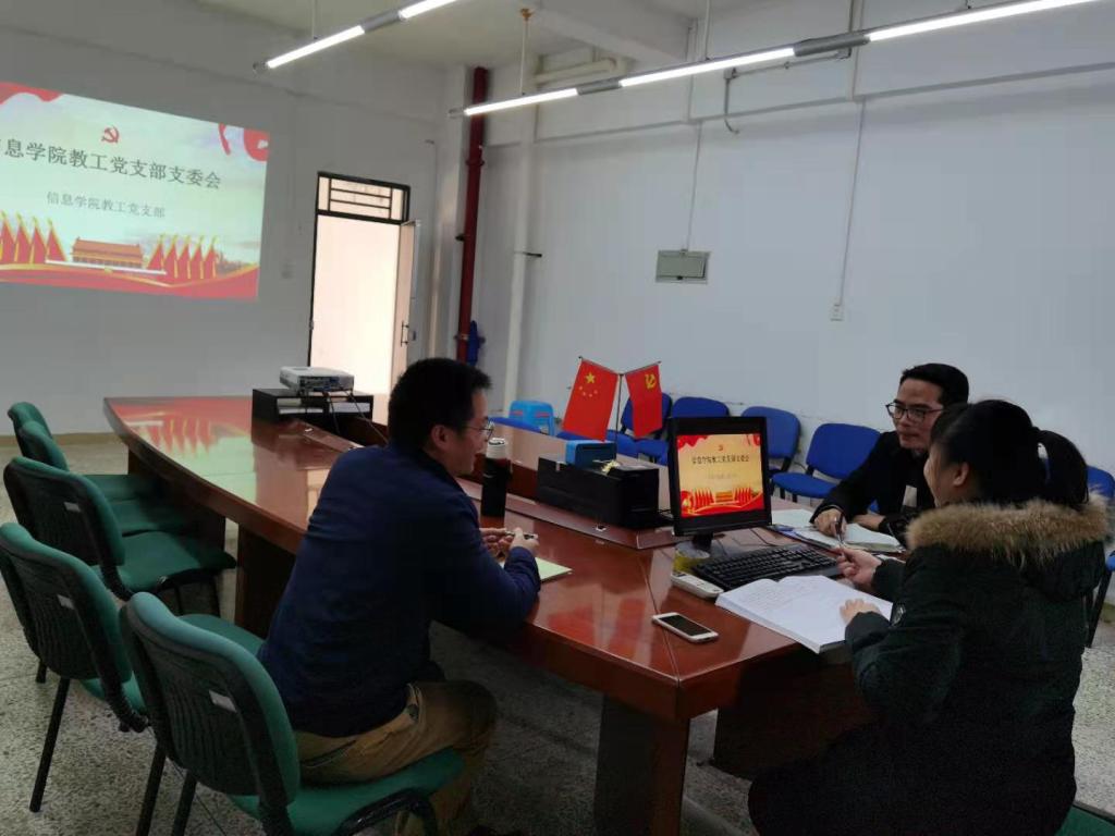 12月29日,信息工程学院教工党支部支部委员在2328召开12月份支部委员会,支部副书记熊婉迪同志主持会议,全体委员参加。