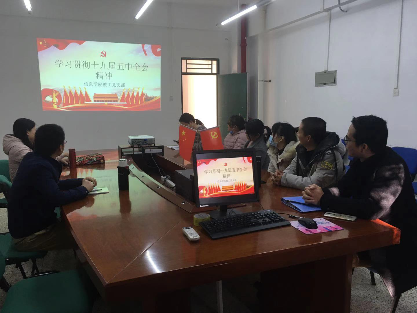 12月30日下午,信息工程学院教工党支部在2328会议室开展了以“学习贯彻党的十九届五中全会精神”为主题的党日活动。会议由教工党支部副书记熊婉迪主持。
