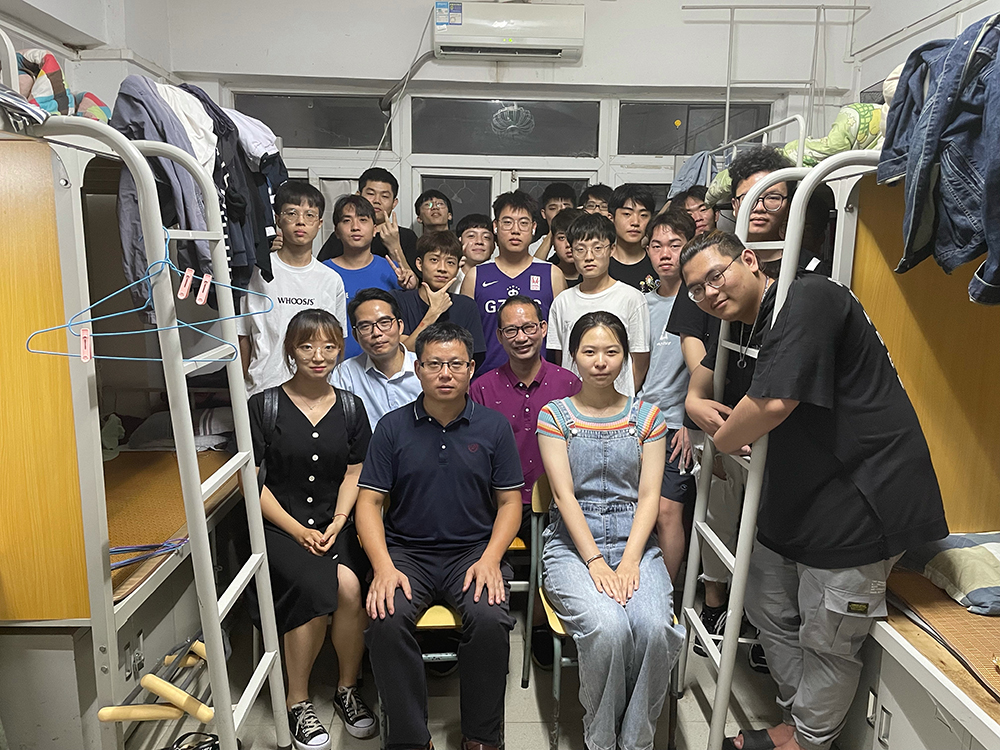 为了进一步加强实习安全教育,让每一个同学都清楚实习安全问题,2021年7月7日晚上,信息工程学院副院长汤锋,软件教研室主任梁奂晖,指导学徒班顶岗实习工作的老师李建平、高寒,以及辅导员胡婷一行走访了2022届软件学徒班宿舍。