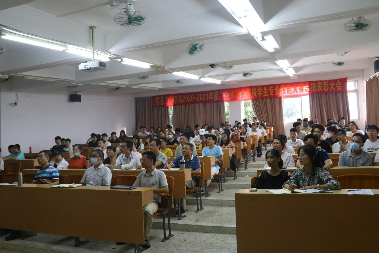 汤院长对本学期的教学工作进行总结。我院在技能大赛上硕果累累,共有5个赛项都取得了优异的成绩。2020-2021年度广东省职业院校学生专业技能大赛“电子商务技能”赛项荣获一等奖并跻身入围国赛,由于广州遭受疫情反扑,无法顺利参加国赛,学院深感惋惜的同时,也对此赛项满怀憧憬。