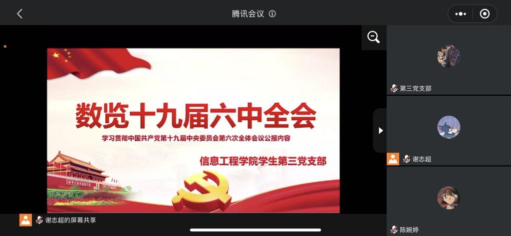 12月30日晚,信息工程学院学生第三党支部开展了红色邀约暨党史知识竞赛活动,出于疫情防控考虑,本次活动依托腾讯会议进行,活动由支部书记谢志超组织学习,支部66位成员参加学习。
