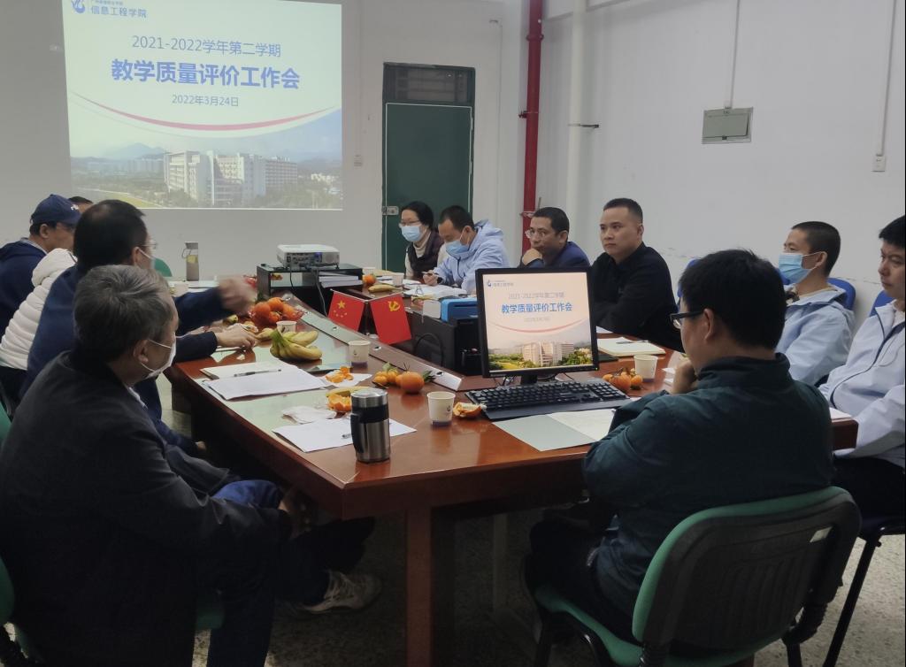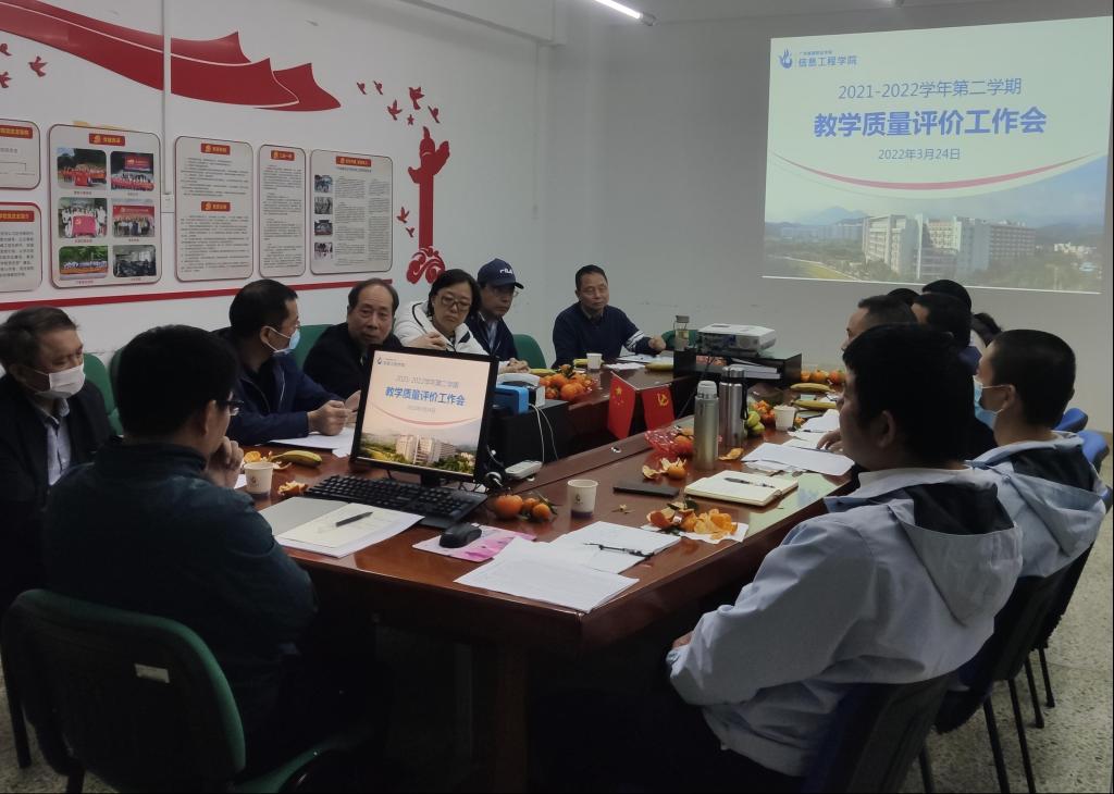 3月24日晚上,我院在信工财经楼2328召开新学期教学质量评价工作会,学校质量办王树勇主任、关晓燕教授、韩明教授、信息工程学院院长曹春华、学院全体兼职督导和教学秘书参会,会议由副院长汤锋主持。