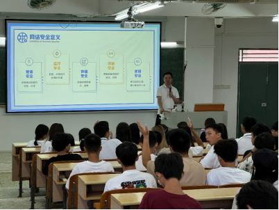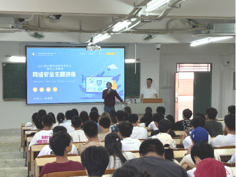 2024年9月27日,学院为2024级计算机网络技术专业新生举办了一场“我与企业高管面对面”的网络安全主题讲座。讲座邀请了广州皓邦信息科技有限公司技术总监余恒怡担任主讲,2024级全体新生参加,ICT教研室主任禤东桦主持。