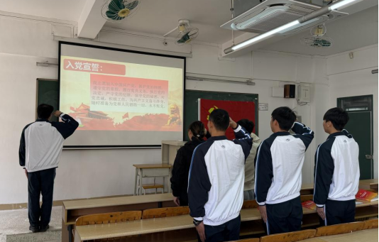 经与会正式党员无记名投票表决,大会一致通过李景超、梁华森两位同志按期转为中共正式党员。徐颖颖现场宣布了支部决议,随后由梁华森同志带领新转正党员进行入党宣誓。