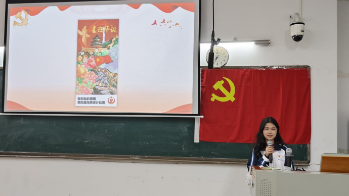 经过多轮评审,24份优秀作品脱颖而出,获得表彰。11月27日晚,第四届“我和我的祖国”主题海报设计比赛颁奖仪式在信工财经楼117课室举行。我院学生党支部书记苏碧玲、王宇翔、李思丽,以及入党积极分子、党员代表和获奖学生共同出席了仪式。