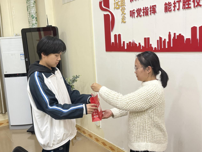 表彰与授牌环节中,乔斐为2023级离任楼层长逐一赠送纪念品,以表彰他们过去一年的无私奉献,随后为2024级新任楼层长郑重授予工牌与工作服。庄严的交接仪式,不仅传递了责任与使命,也展现了学院社区管理工作薪火相传、持续向好的生动局面。