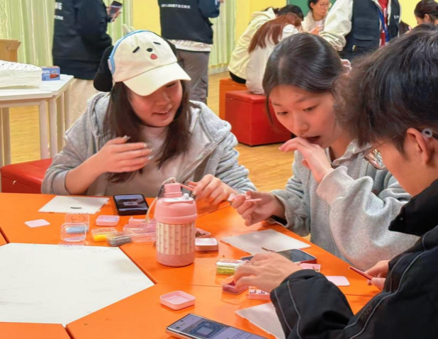 在“色彩与情绪”心理学引导下,同学们对红(热情)、黄(希望)、蓝(沉稳)等豆粒的每一次抉择,都是对自我情绪的一次觉察与表达。专注于镊尖与豆粒的方寸之间,同学们得以从期末压力中抽离,进入高度专注的“心流”状态,在宁静的创造中重新锚定内心秩序,践行“沉心静气,方能行稳致远”的成长哲理。