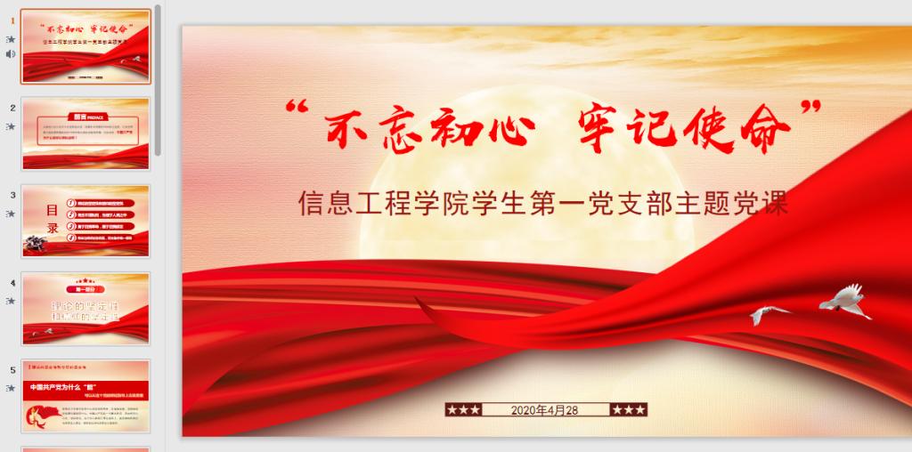 在疫情防控“听课不停学”期间,为落实“三会一课”制度,进一步增强学生党员党性修养,4月28日中午信息工程学院学生第一党支部在腾讯会议上开展了“不忘初心、牢记使命”主题教育。由支部书记胡婷主讲,全体党员和入党积极分子参加。