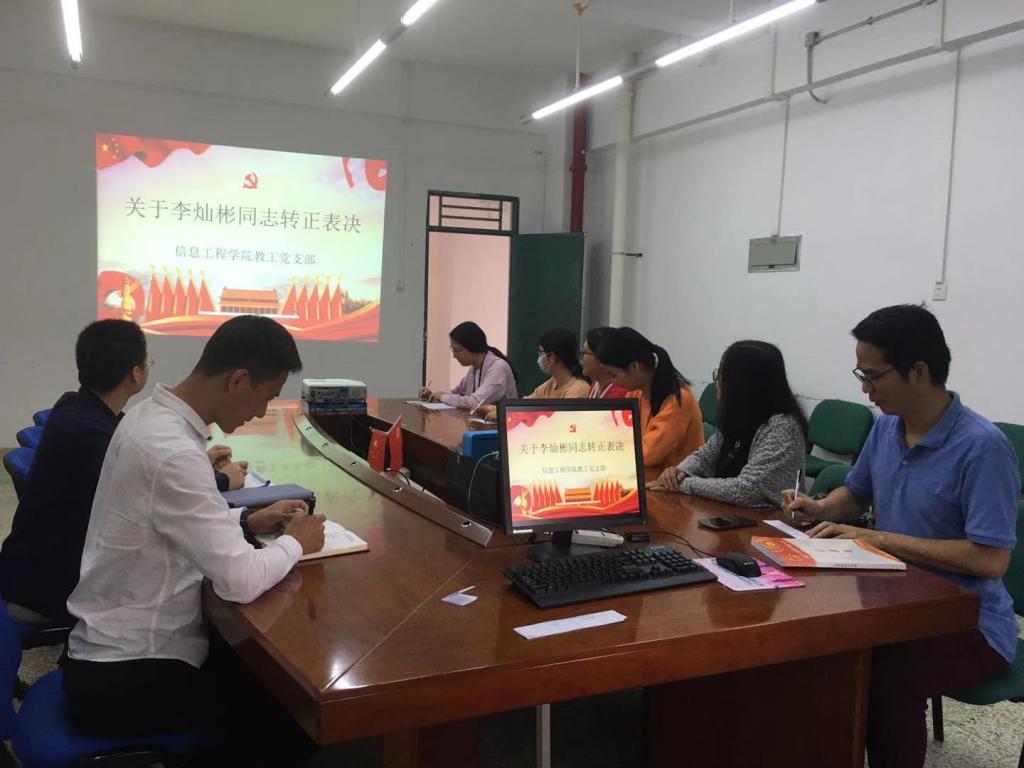 11月18日上午,信息工程学院教工党支部在2328会议室召开“关于预备党员李灿彬同志的转正通表会”,会议由教工支部副书记熊婉迪主持。